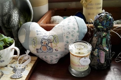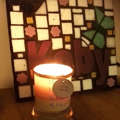 I have a tattoo of Koby's footprint, a teddy bear with his name on, another mosaic designed just for him, artwork for him and candles, angels and more.