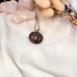 Please note these are upcycled coins that are in the age range of 30 years plus. They come on a 60cm stainless steel ball chain or a 51cm stainless steel rolo chain.