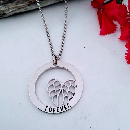 The gorgeous Angel Wings Pendant, a truly captivating piece that combines the beauty of angelic wings with personalised details.