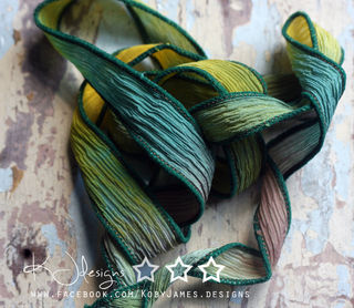 Gorgeous hand dyed ribbon with crinkle crepe silk. Absolutely stunning colours. The edges are overlocked, and the ends tapered and treated with fray check.